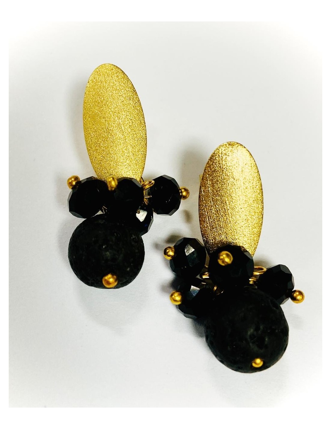 ARO BAÑO DE ORO CRISTALES NEGROS