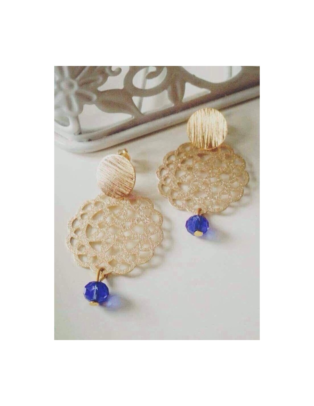 ARO BAÑO DE ORO CRISTAL AZUL