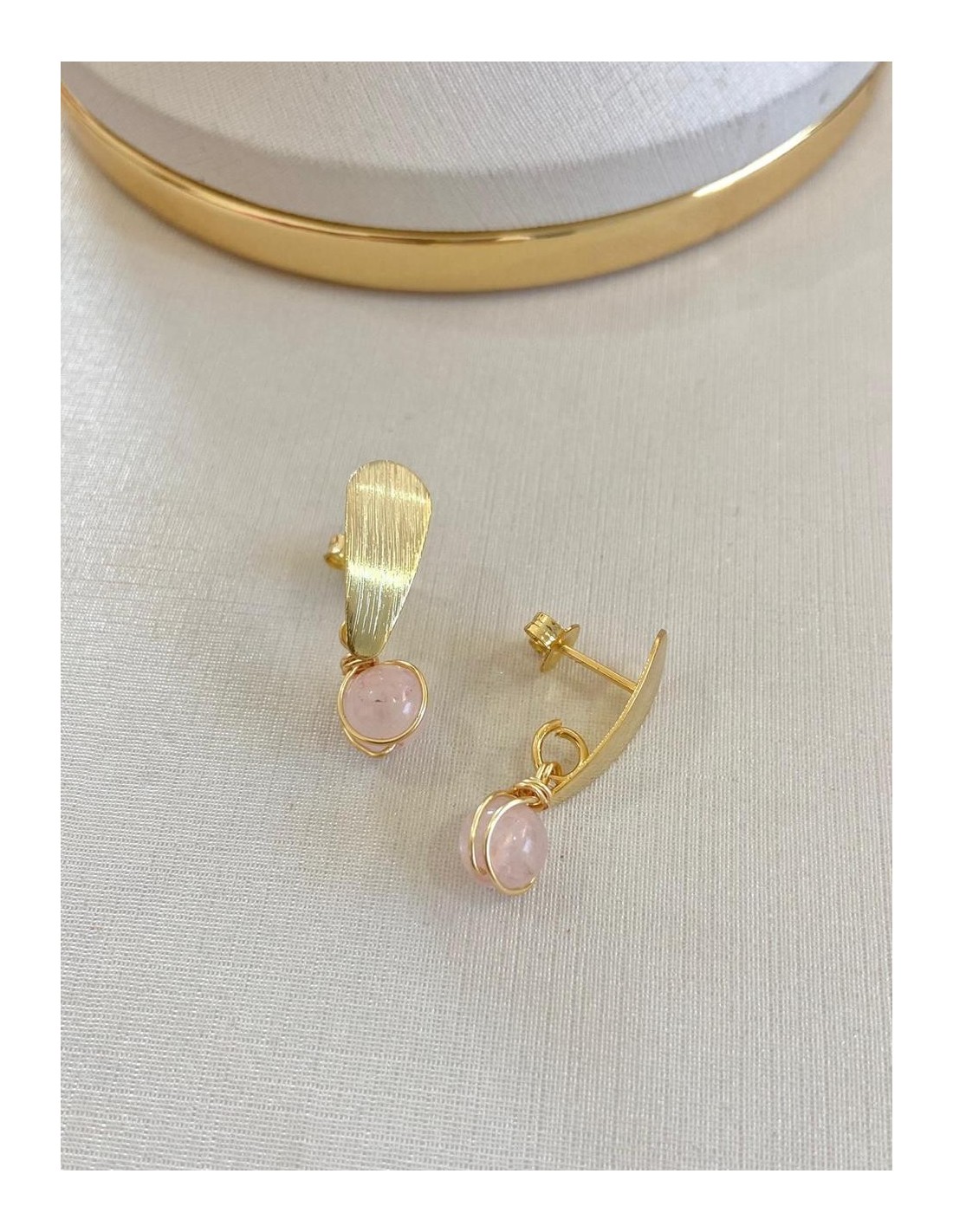 AROS BAÑADOS EN ORO PIEDRA ROSADA