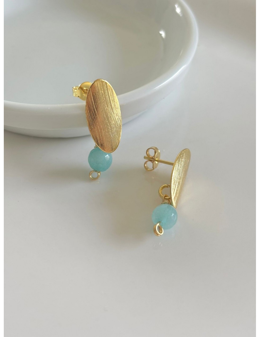 AROS BAÑADOS EN ORO PIEDRA CELESTE 6MM
