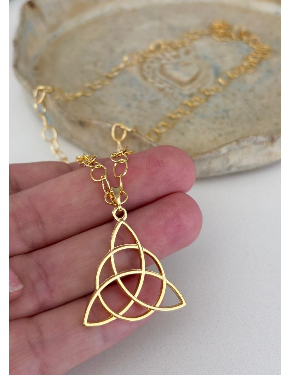 COLLAR BAÑADO EN ORO DIJE NUDO DE TRINIDAD 45CMS
