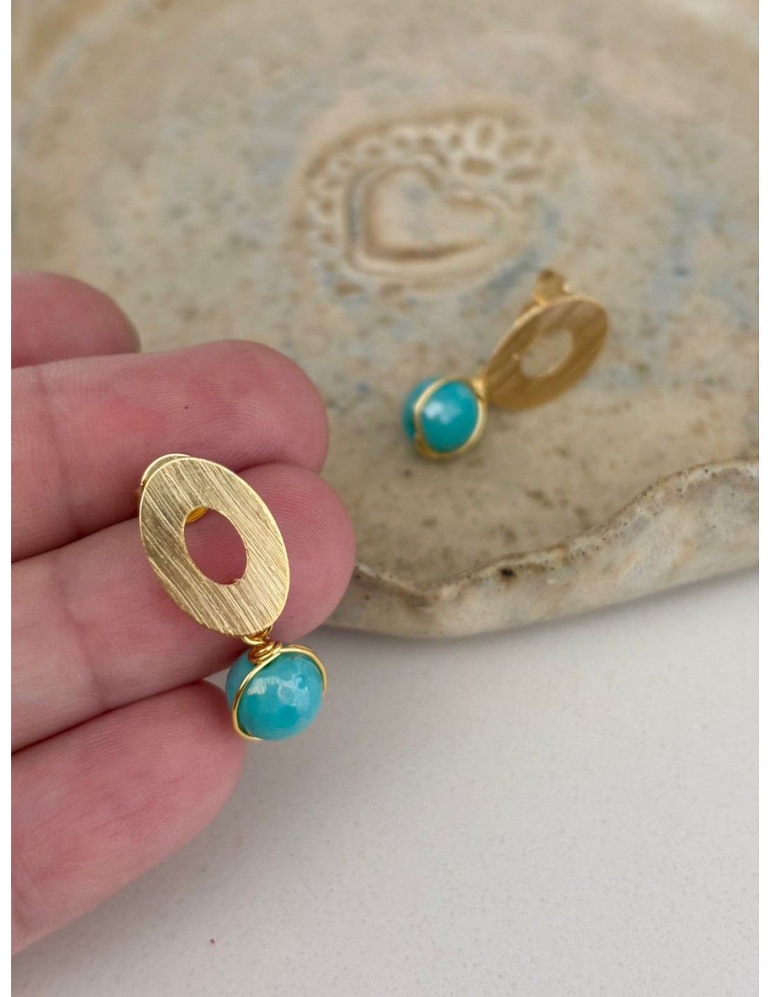 AROS BAÑADOS EN ORO PIEDRA TURQUESA