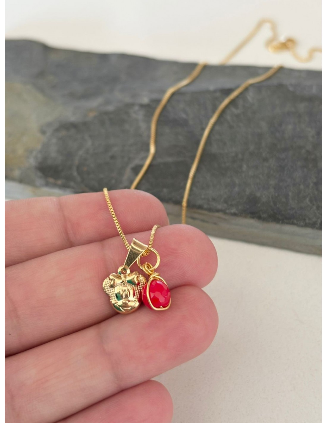 COLLAR BAÑADO EN ORO PIEDRA ROJA