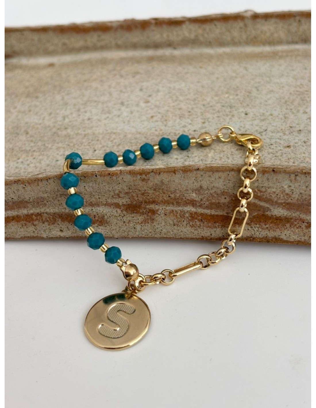 PULSERA BAÑADA EN ORO PIEDRA VERDE
