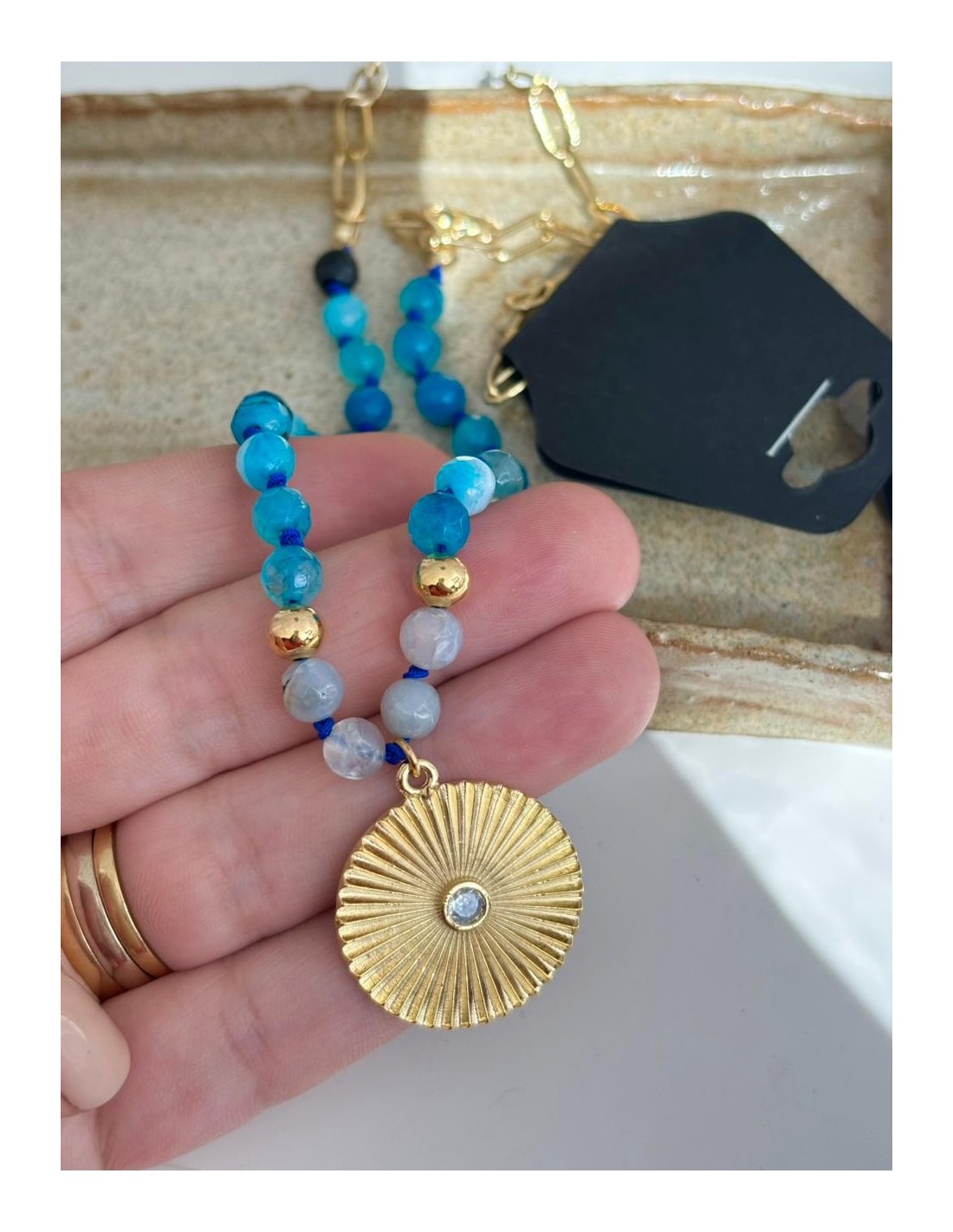 COLLARES BAÑADO EN ORO PIEDRA CELESTE
