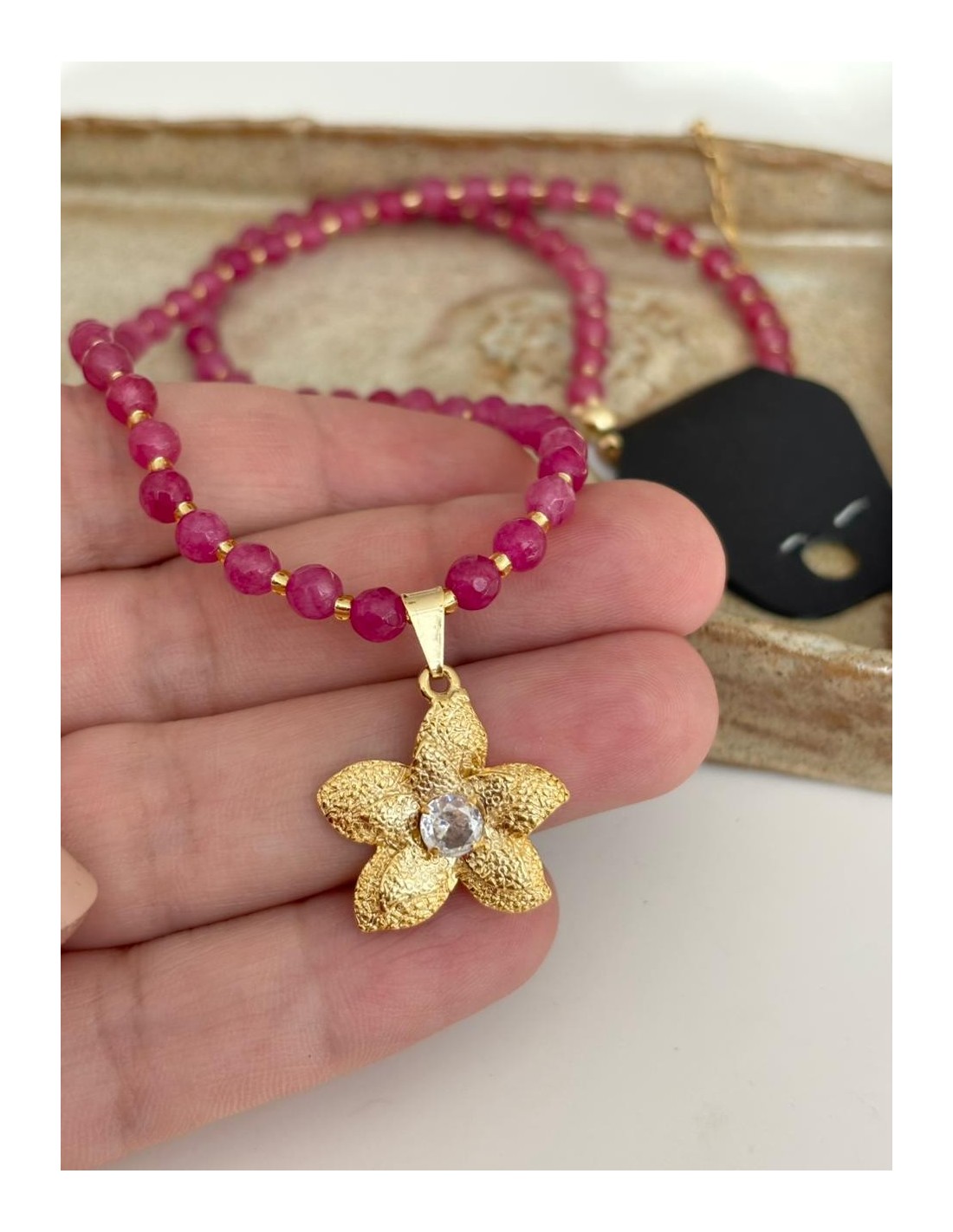 COLLARES BAÑADO EN ORO PIEDRA FUCSIA