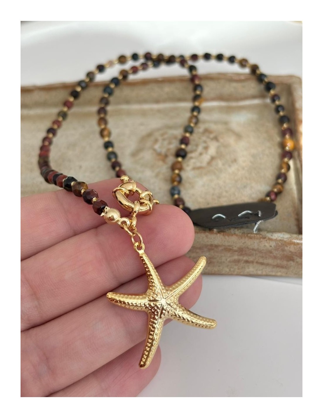 COLLARES BAÑADO EN ORO PIEDRA CAFÉ