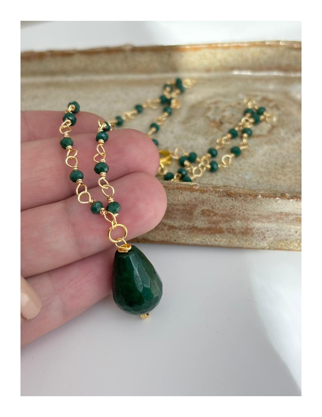 COLLARES BAÑADO EN ORO PIEDRA VERDE
