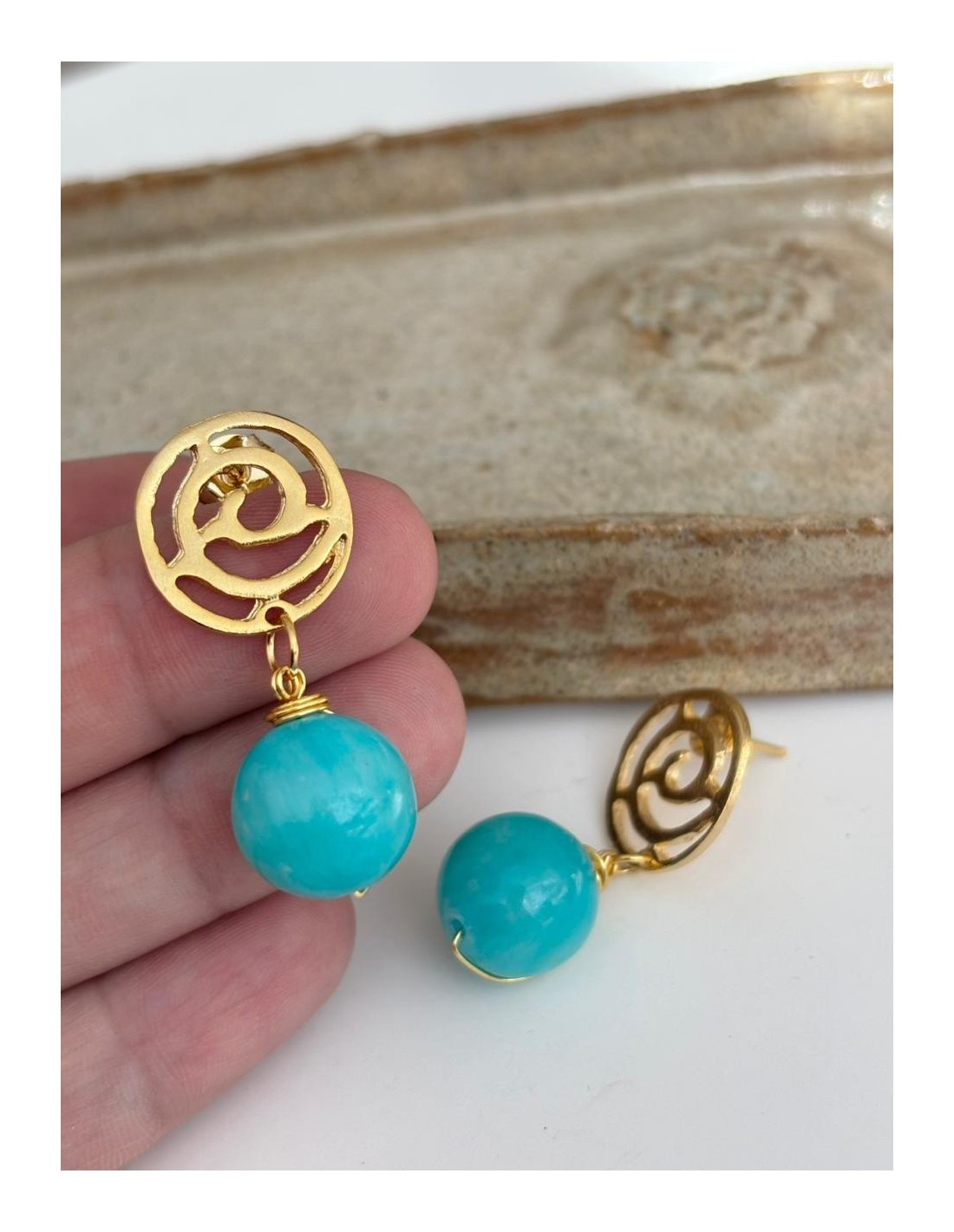 AROS BAÑADOS EN ORO PIEDRA CELESTE