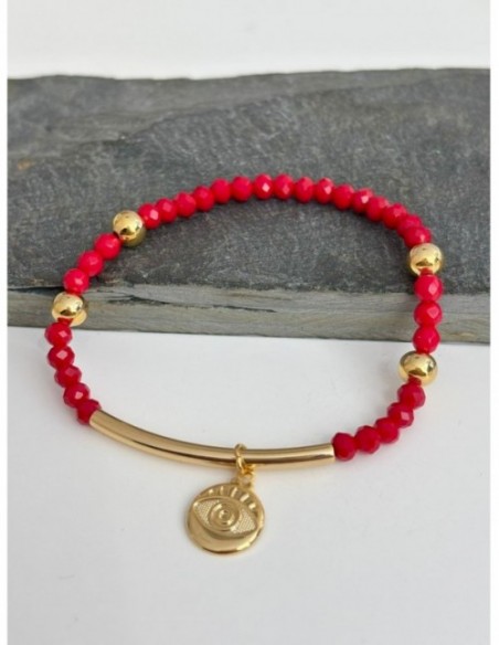 PULSERA BAÑADA EN ORO CRISTALES ROJOS OJO TURCO