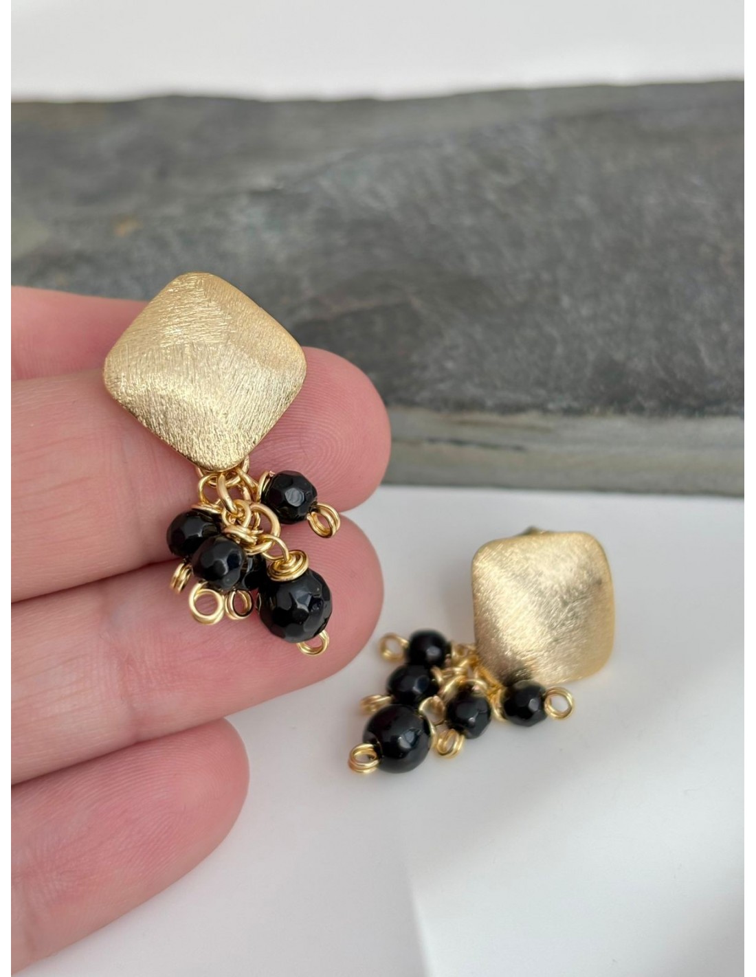 AROS BAÑADOS EN ORO CRISTALES NEGROS