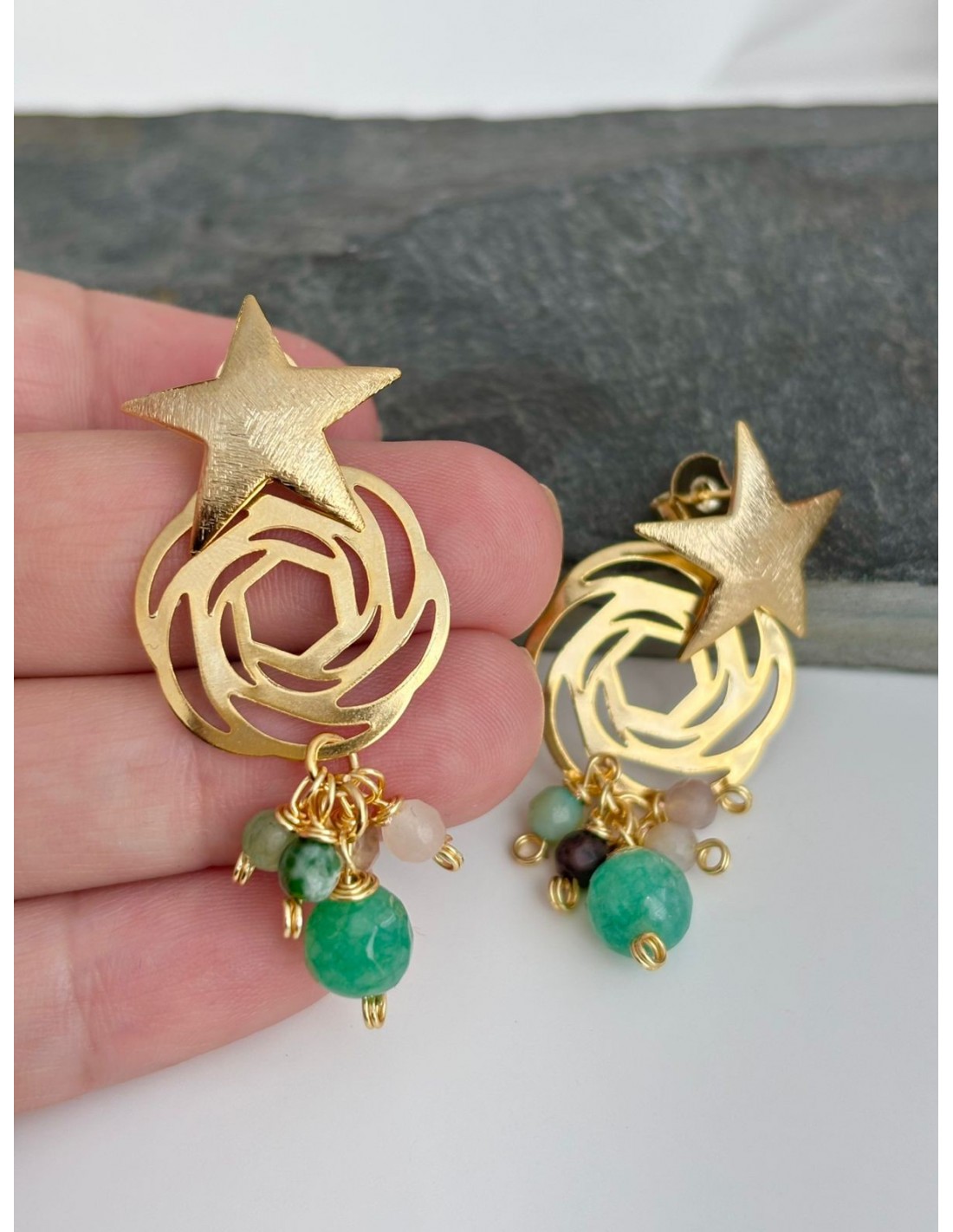 Nuevo DISPONIBLE Joyas bañadas en oro AROS BAÑADOS EN ORO AGATAS GRISES 10692 $ 4.990 AROS BAÑADOS EN ORO CRISTALES AÑADIR