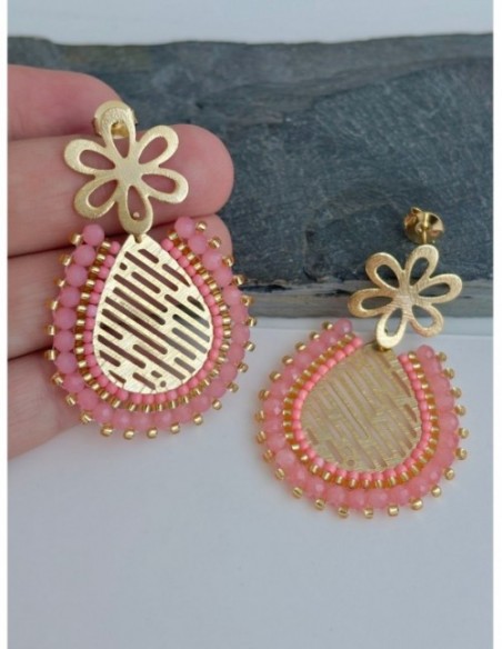 AROS BAÑADOS EN ORO PIEDRA ROSADA