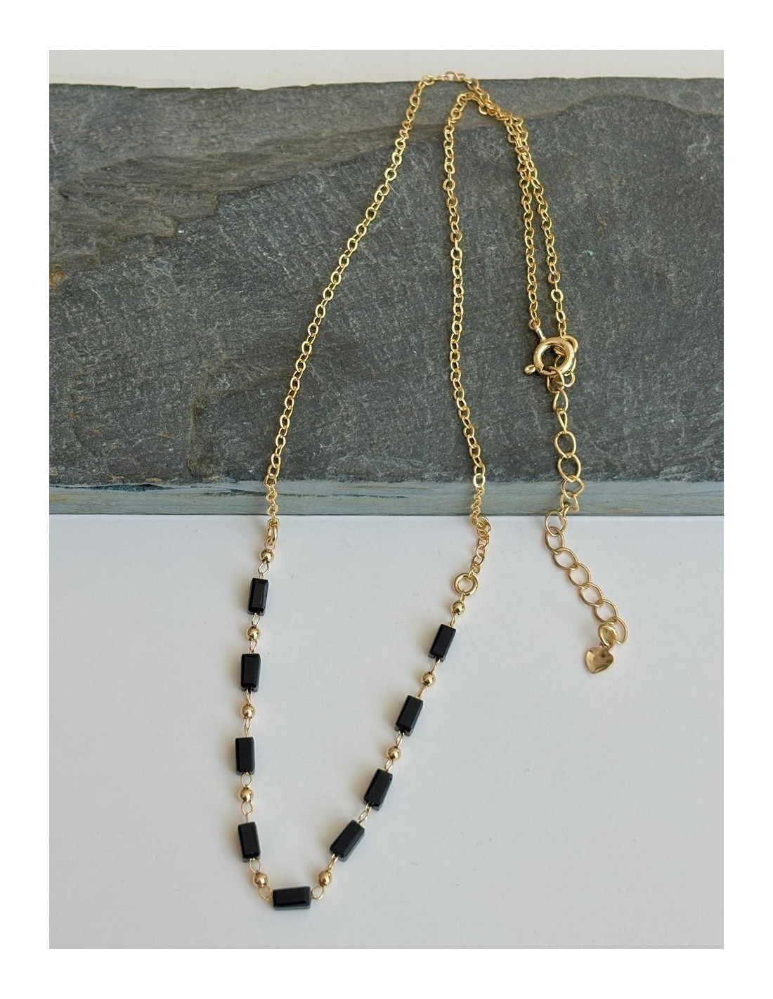 COLLAR BAÑADO EN ORO CRISTALES NEGROS 40+5CMS