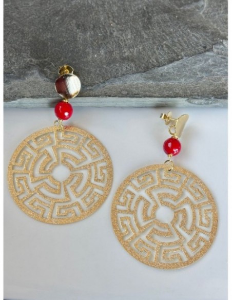 AROS BAÑADOS EN ORO PIEDDRA ROJA