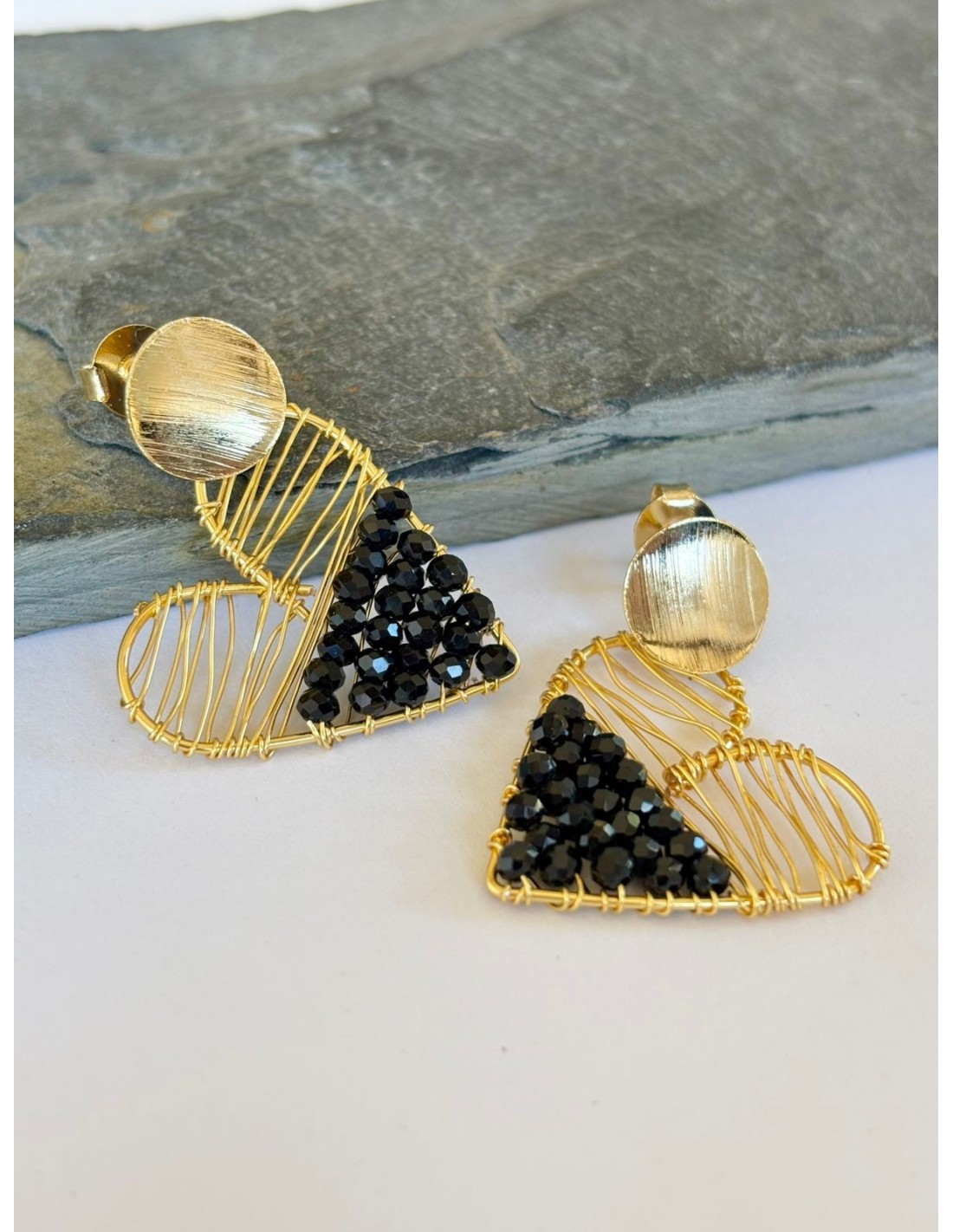 AROS BAÑADOS EN ORO CRISTALES NEGROS