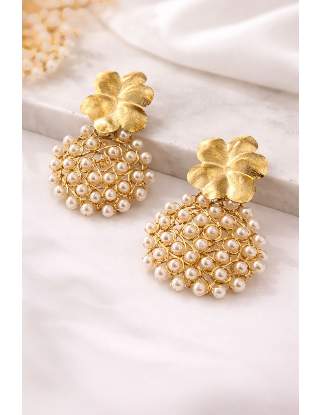 AROS BAÑADOS EN ORO PERLAS BLANCAS