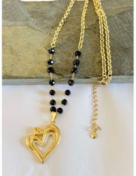 COLLAR BAÑADO EN ORO CRISTALES NEGROS