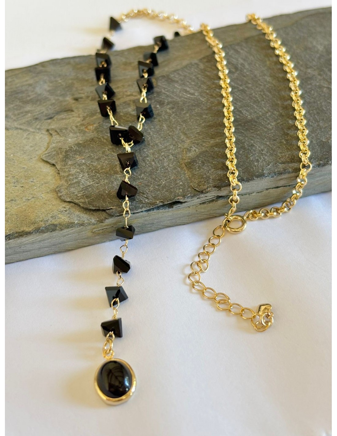 COLLAR BAÑADO EN ORO CRISTALES NEGROS
