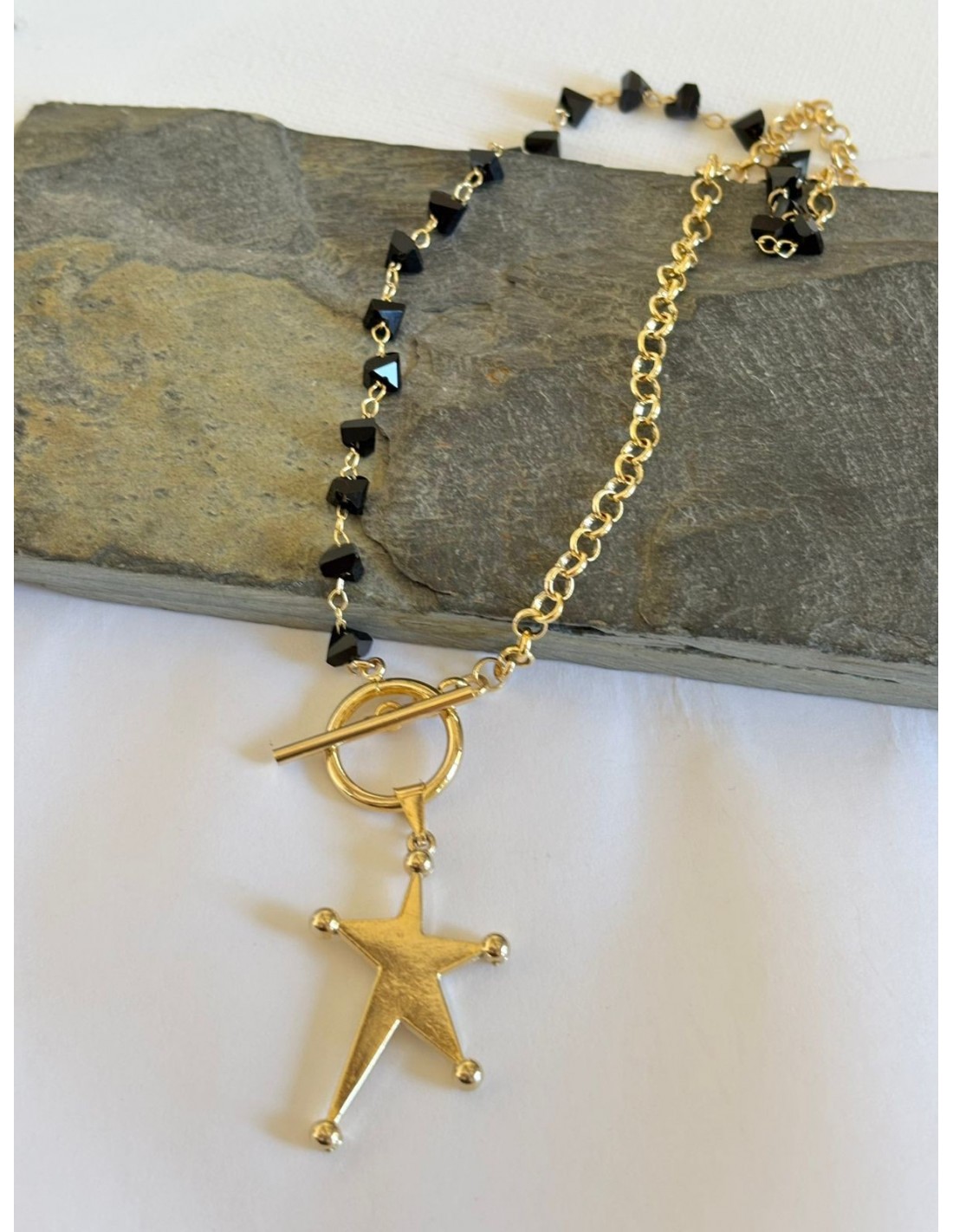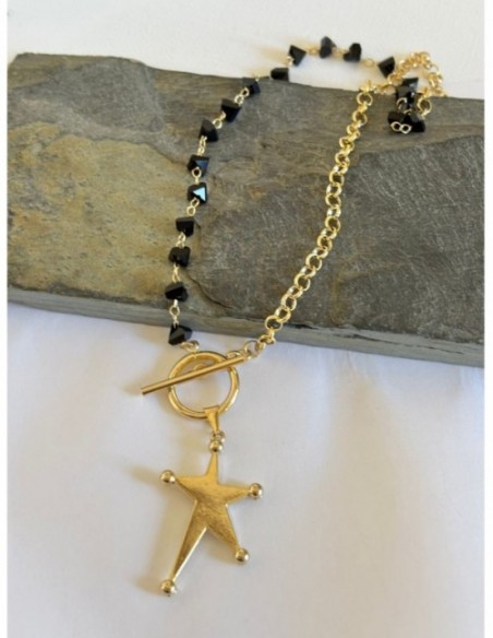 COLLAR BAÑADO EN ORO CRISTALES NEGROS