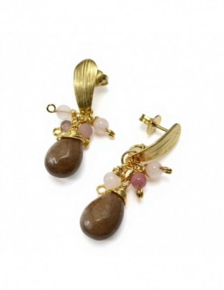 AROS BAÑADOS EN ORO PIEDRA CAFÉ