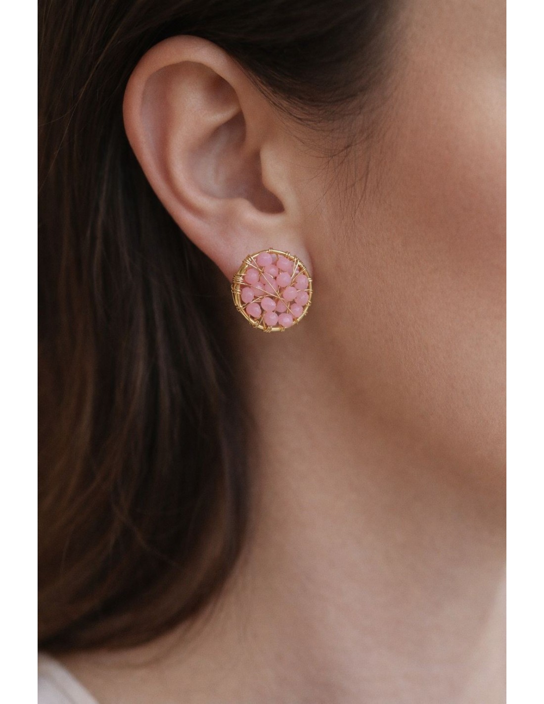 AROS BAÑADOS EN ORO PIEDRA ROSADA
