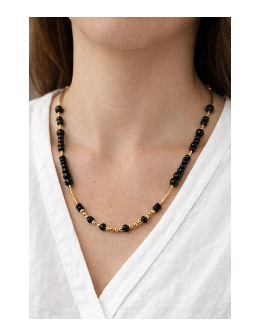 COLLARES BAÑADOS EN ORO PIEDRAS NEGRAS
