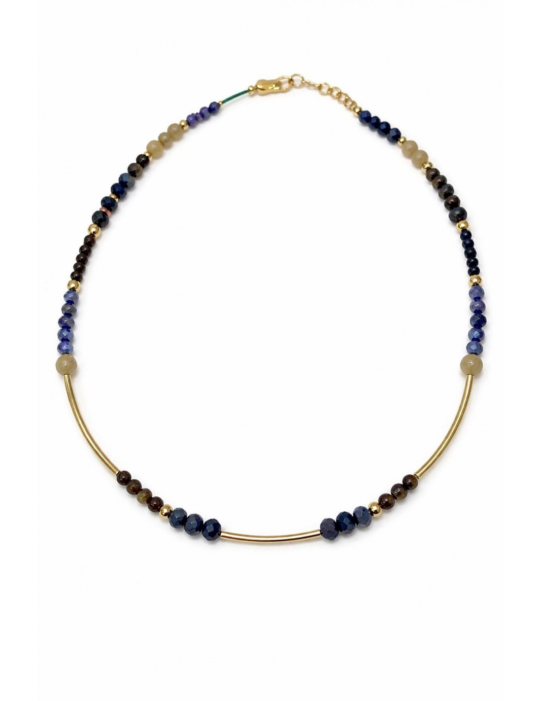 COLLARES BAÑADOS EN ORO PIEDRAS AZUL Y NEGRO