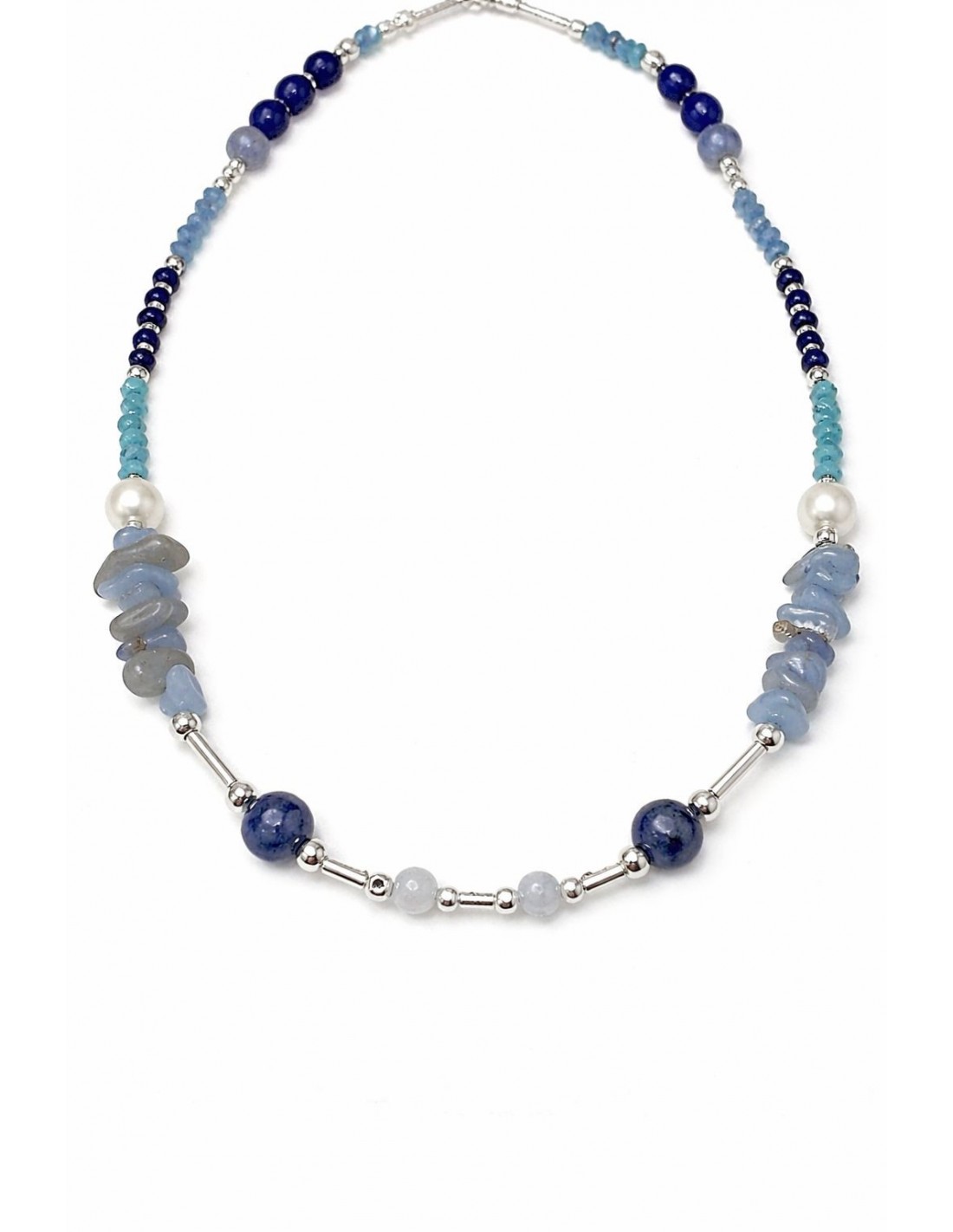 COLLARES BAÑADOS EN PLATA PIEDRAS AZULES Y CELESTES