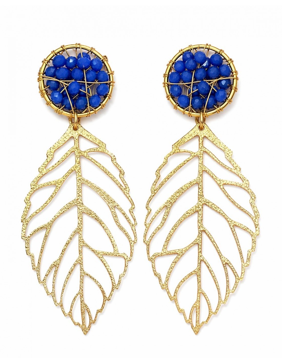 AROS BAÑADOS EN ORO CRISTALES AZULES