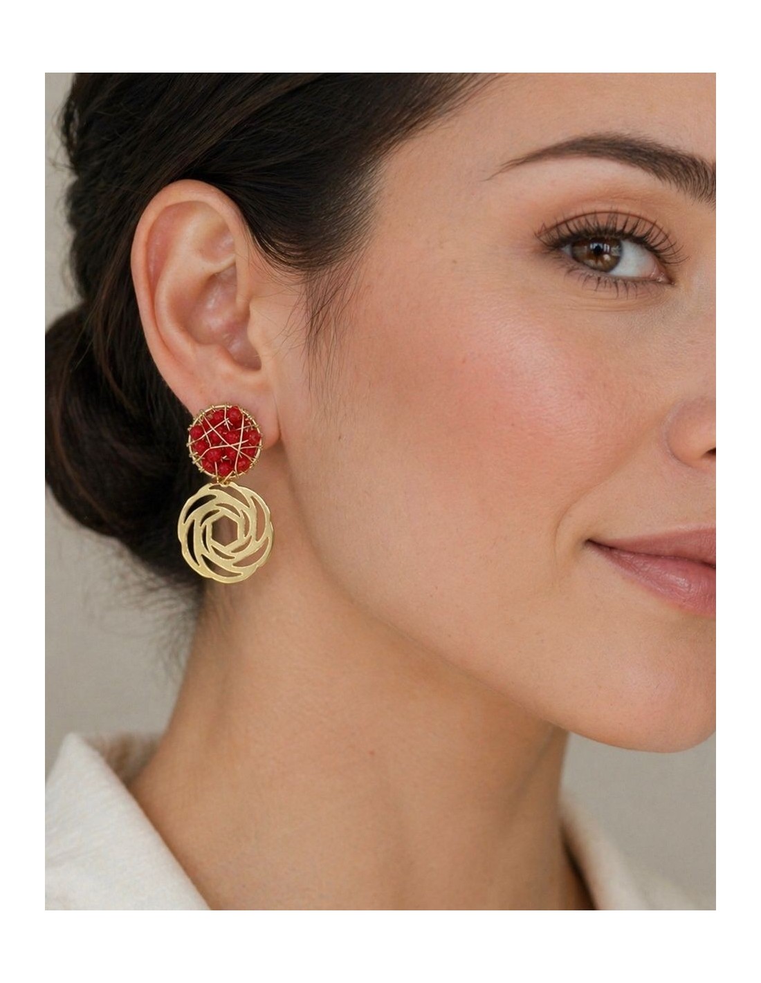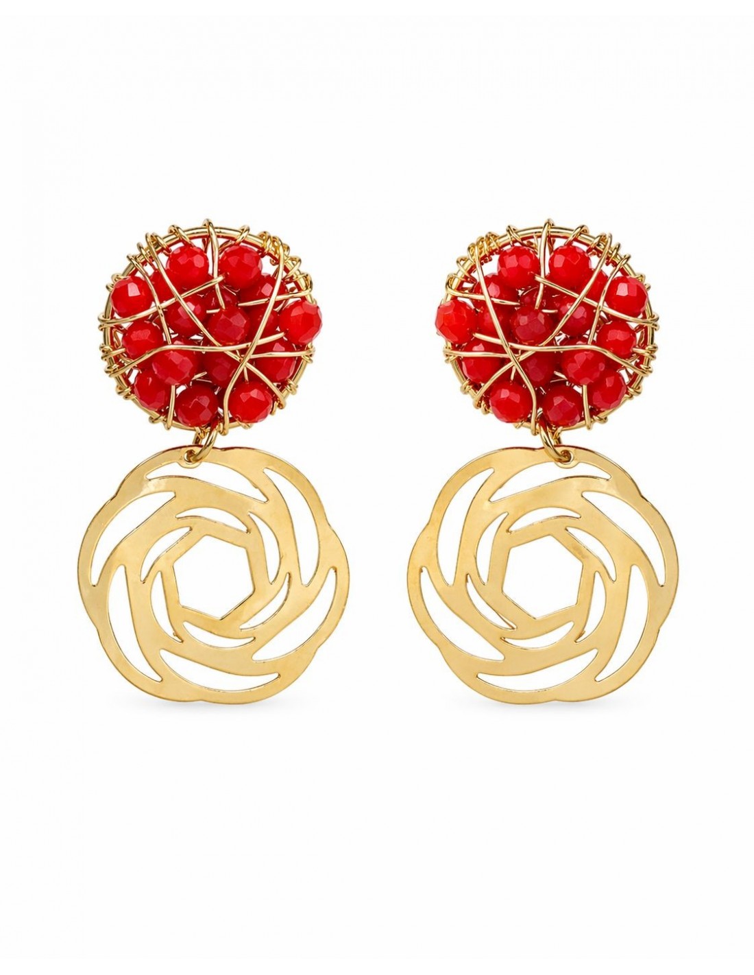 AROS BAÑADOS EN ORO CRISTALES ROJOS