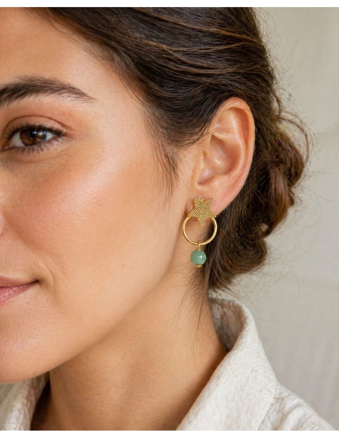 AROS BAÑADOS EN ORO PIEDRA VERDE