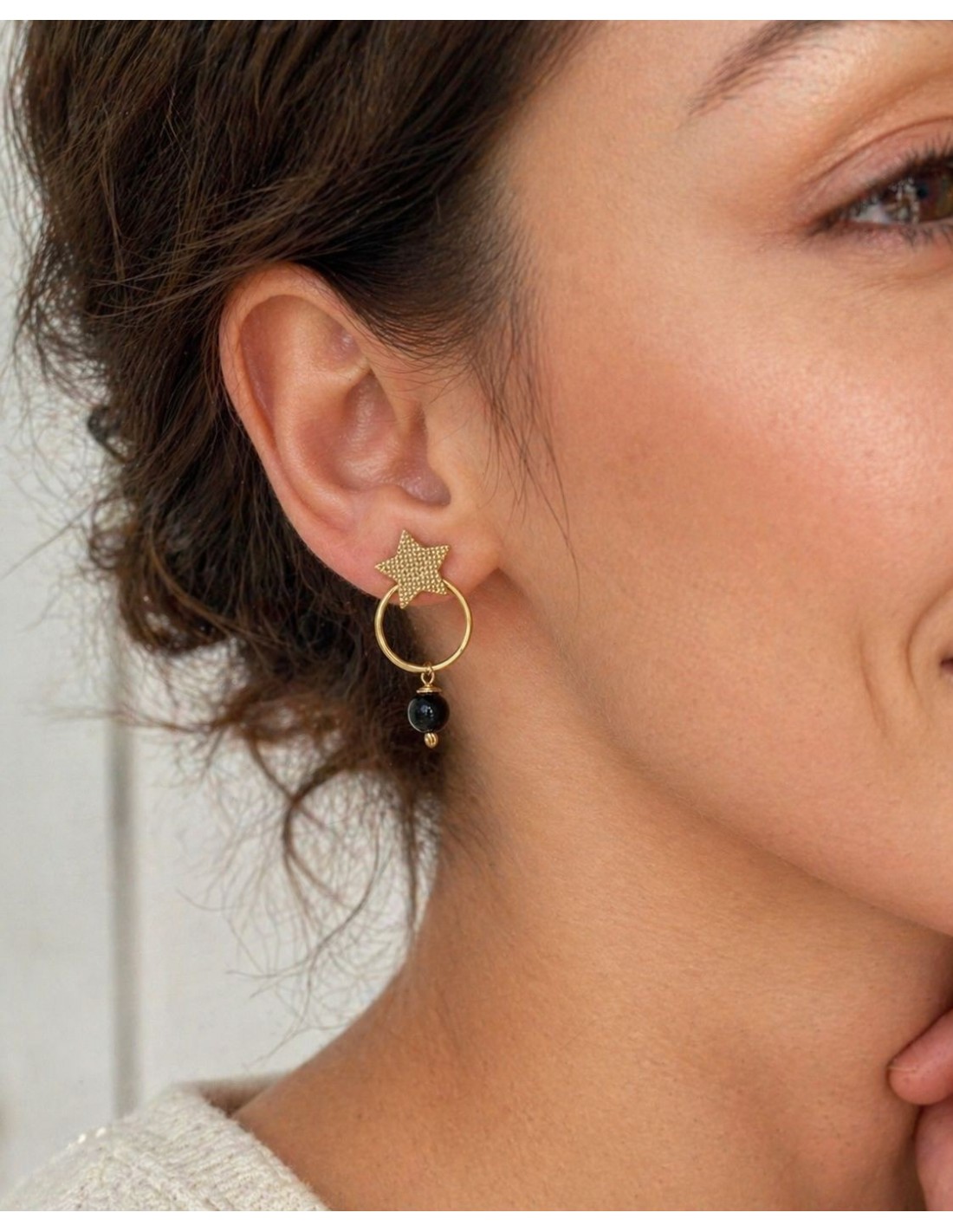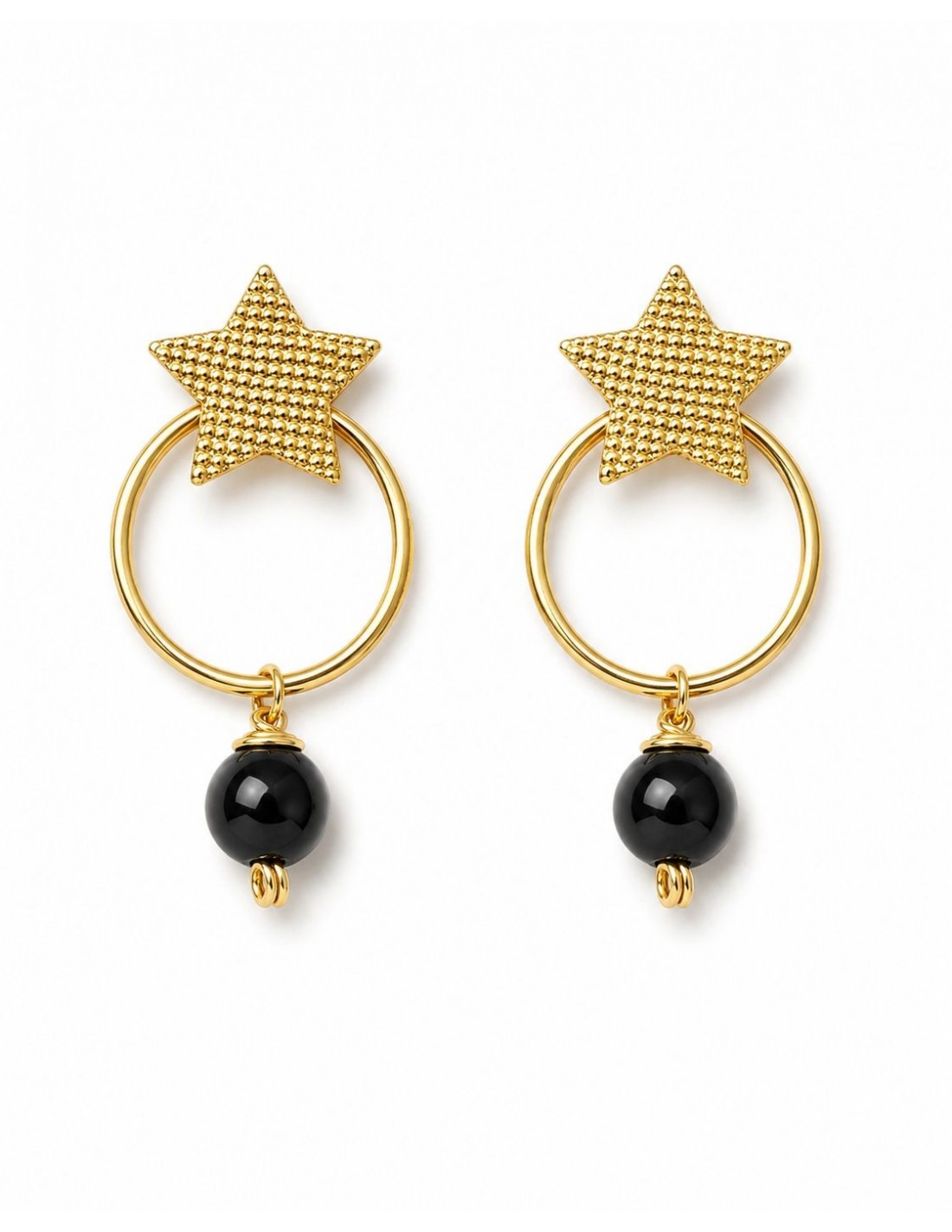 AROS BAÑADOS EN ORO PIEDRA NEGRA
