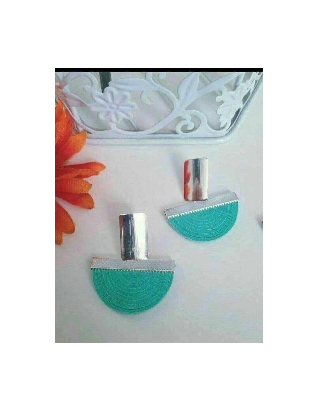 ARO MEDIA LUNA BASE RECTANGULAR CELESTE BAÃADA EN PLATA DE GAMUZA