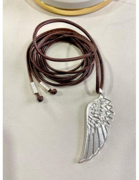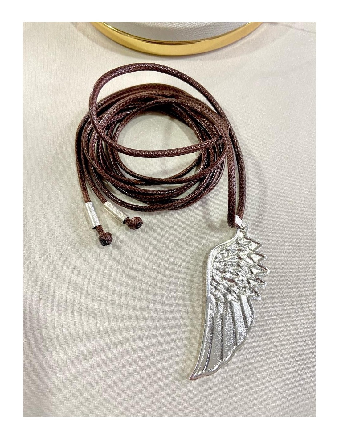 COLLAR MULTIFORMA 150CMS BAÑADO EN PLATA ALA CORDÓN CAFÉ