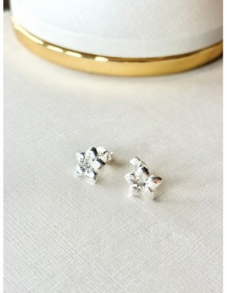 AROS BAÑADOS EN PLATA FLOR PEQUEÑA CON CIRCON