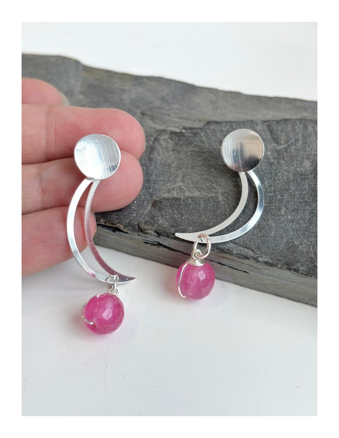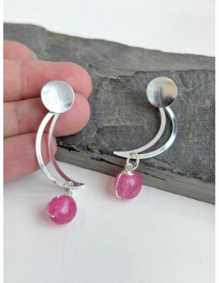 ARO BAÑADO EN PLATA LUNA PIEDRA ROSADA