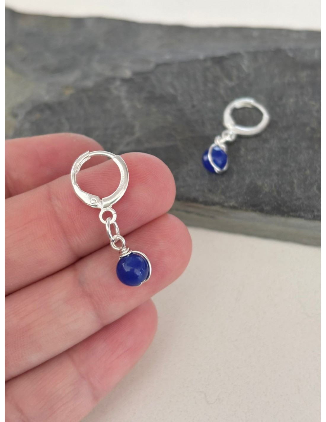 AROS BAÑADOS EN PLATA PIEDRA AZUL