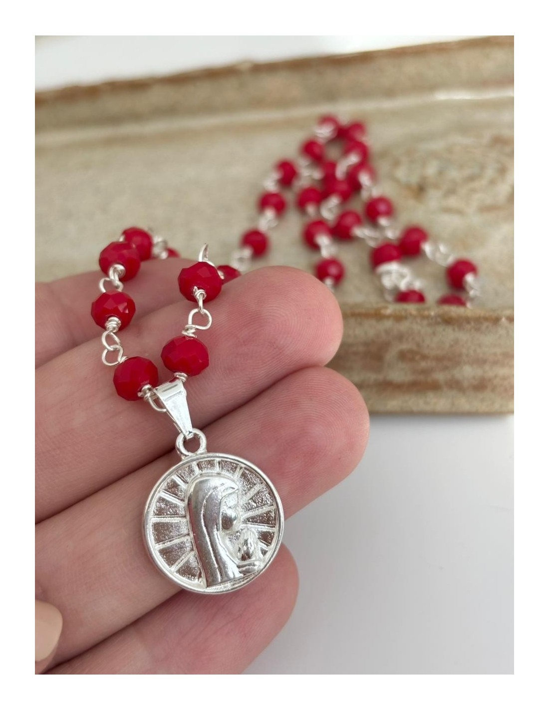 COLLARES BAÑADO EN PLATA PIEDRA ROJA
