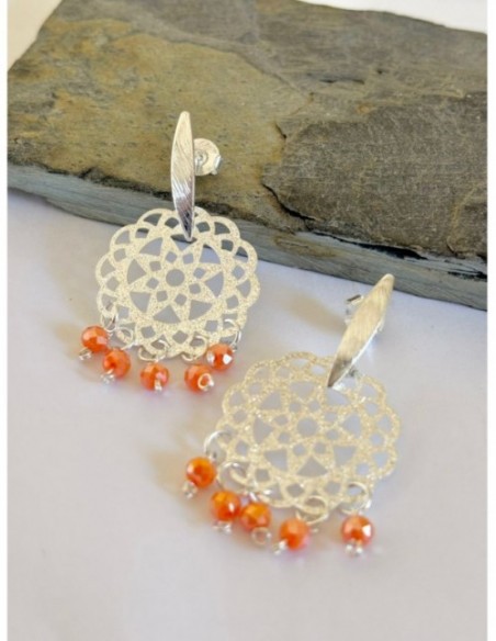 AROS BAÑADOS EN PLATA CRISTALES NARANJOS