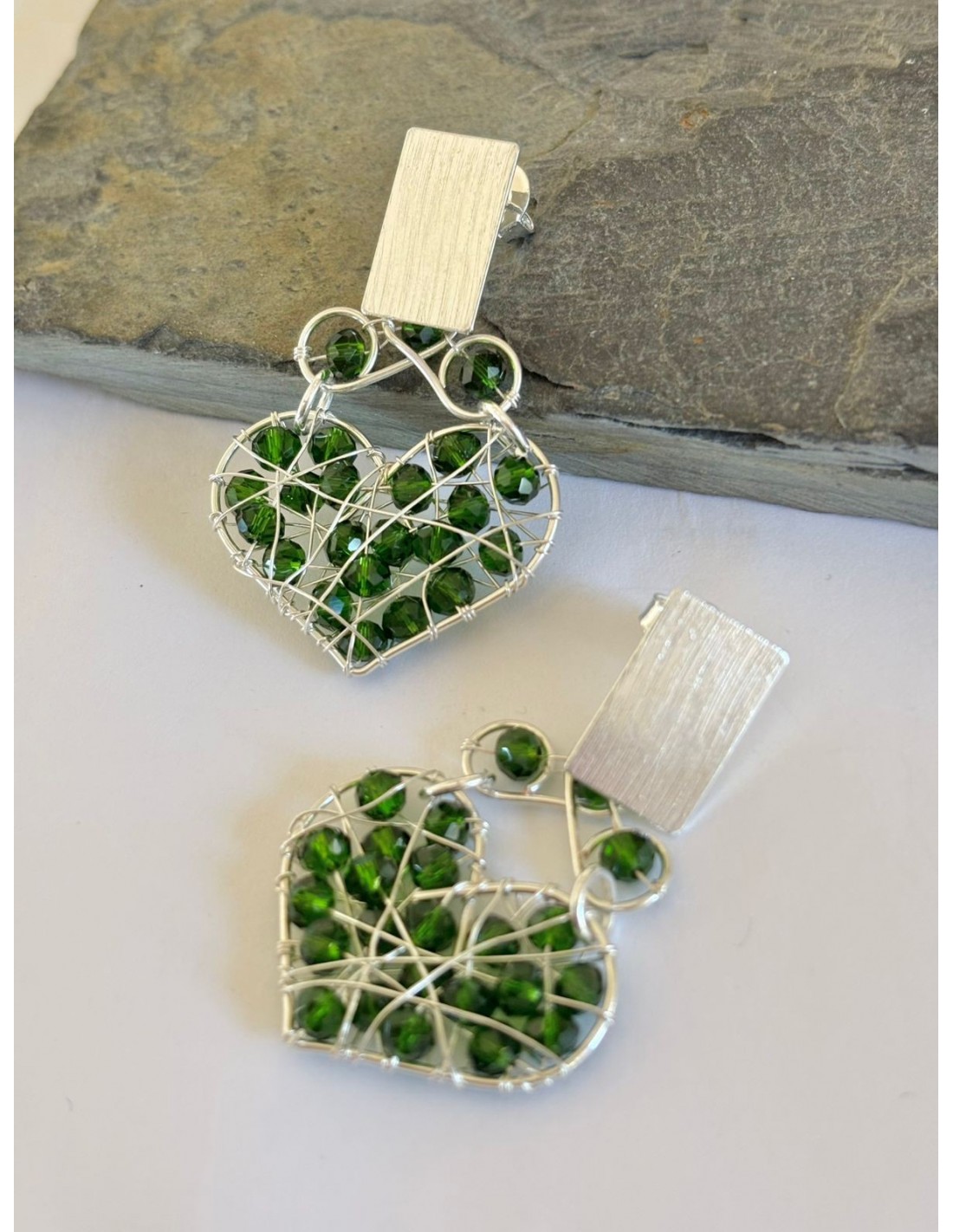 AROS BAÑADOS EN PLATA CRISTALES VERDES