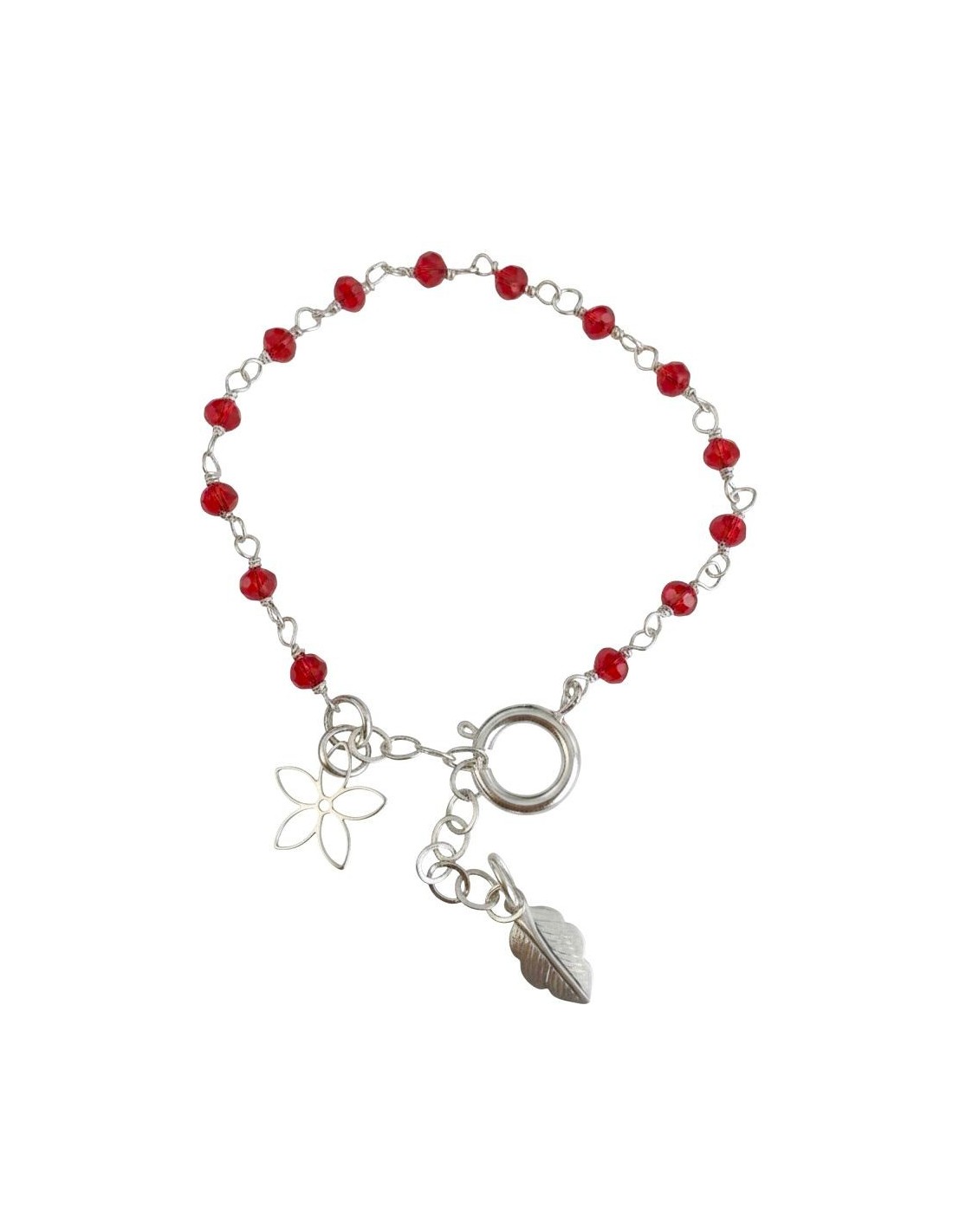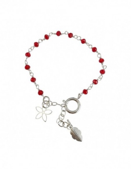 PULSERA BAÑADA EN PLATA CRISTALES ROJOS