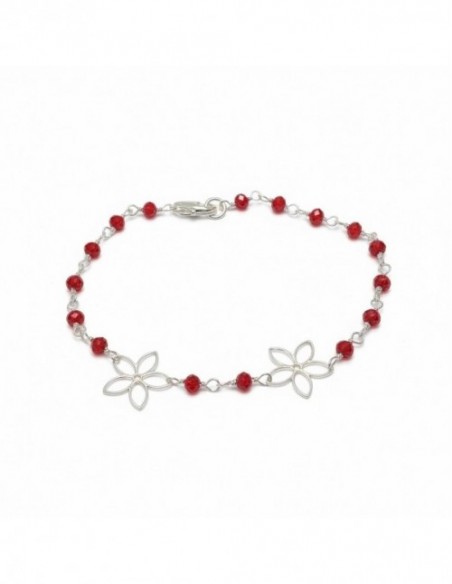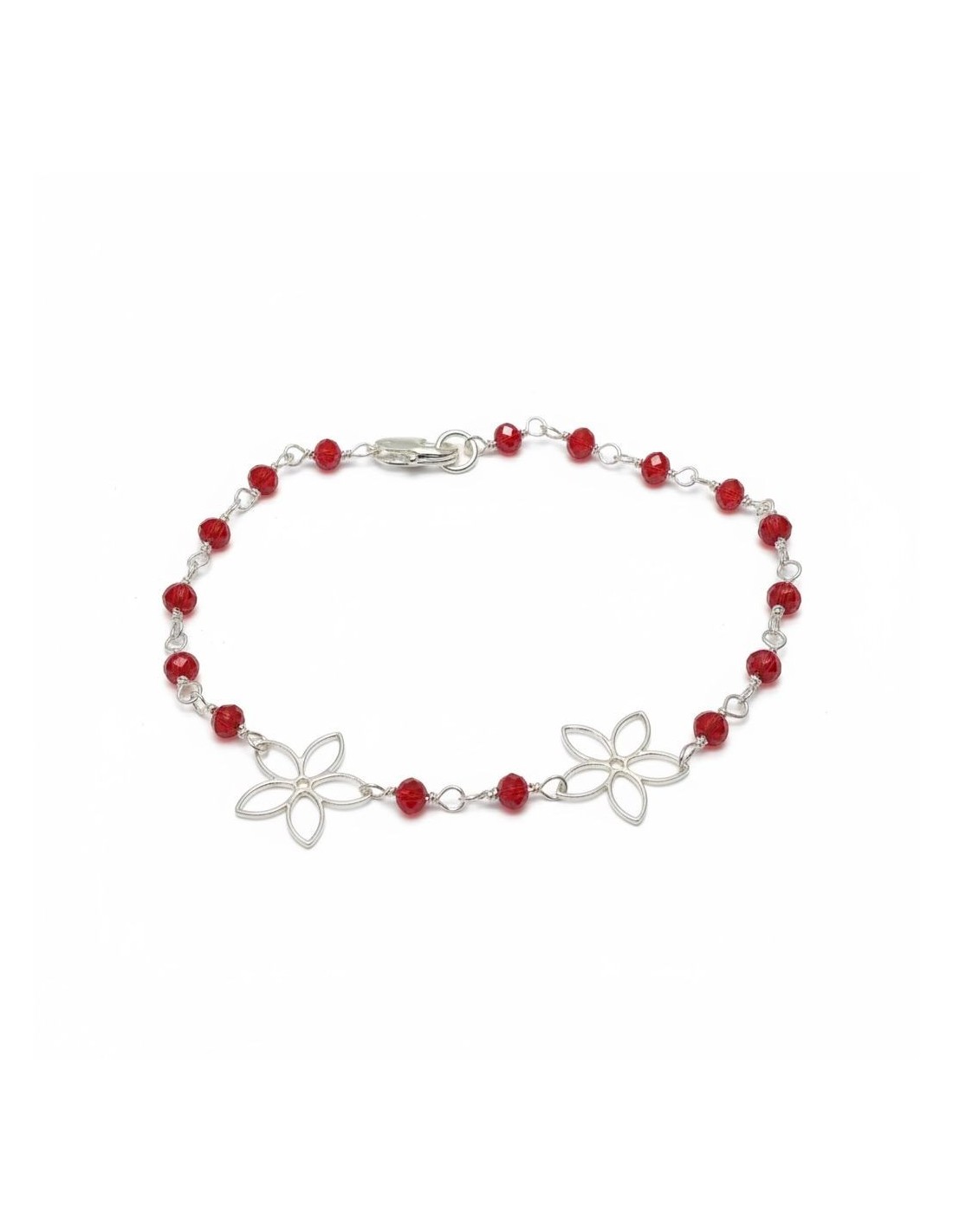 PULSERA BAÑADA EN PLATA CRISTALES ROJOS