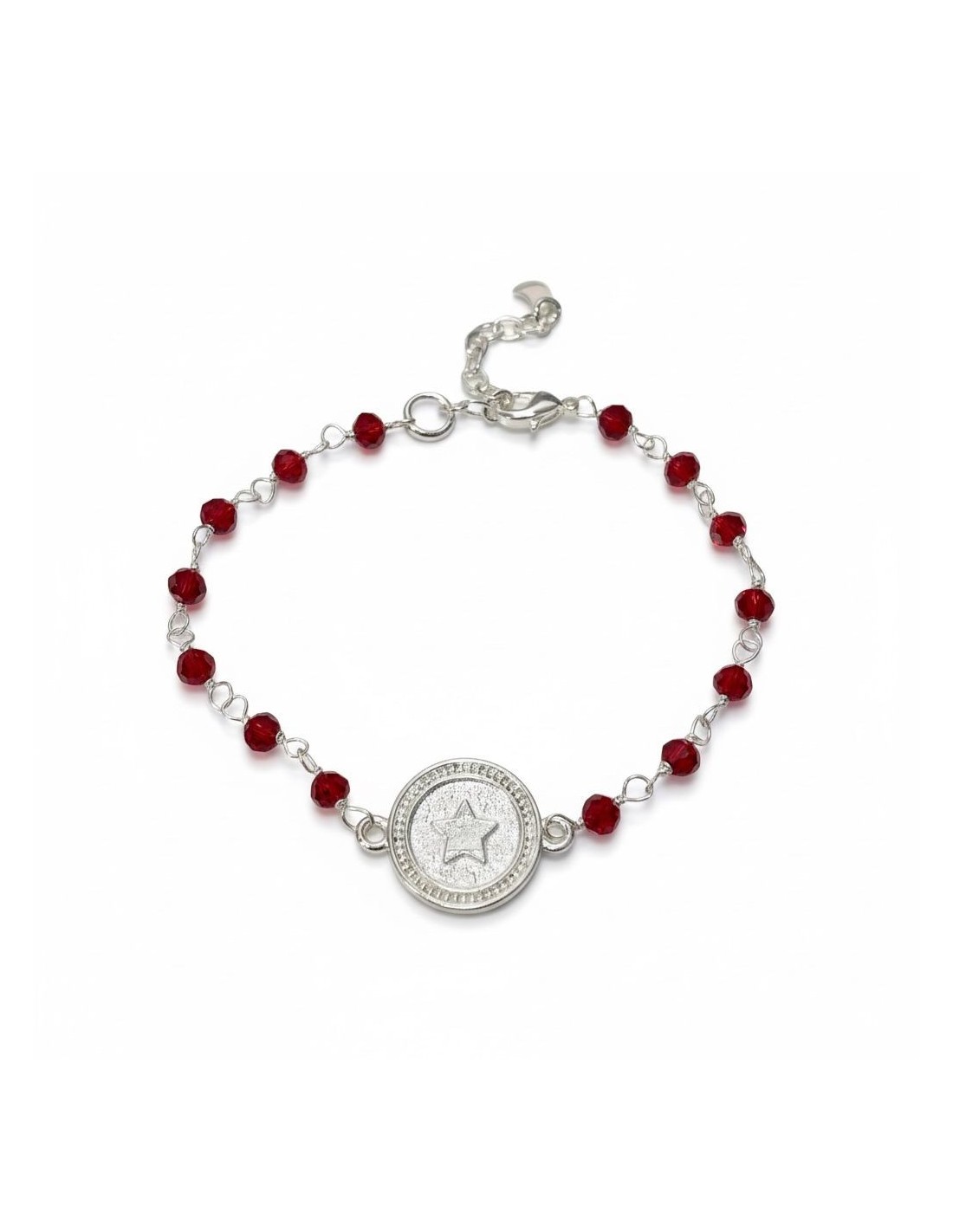 PULSERA BAÑADA EN PLATA CRISTAL ROJO