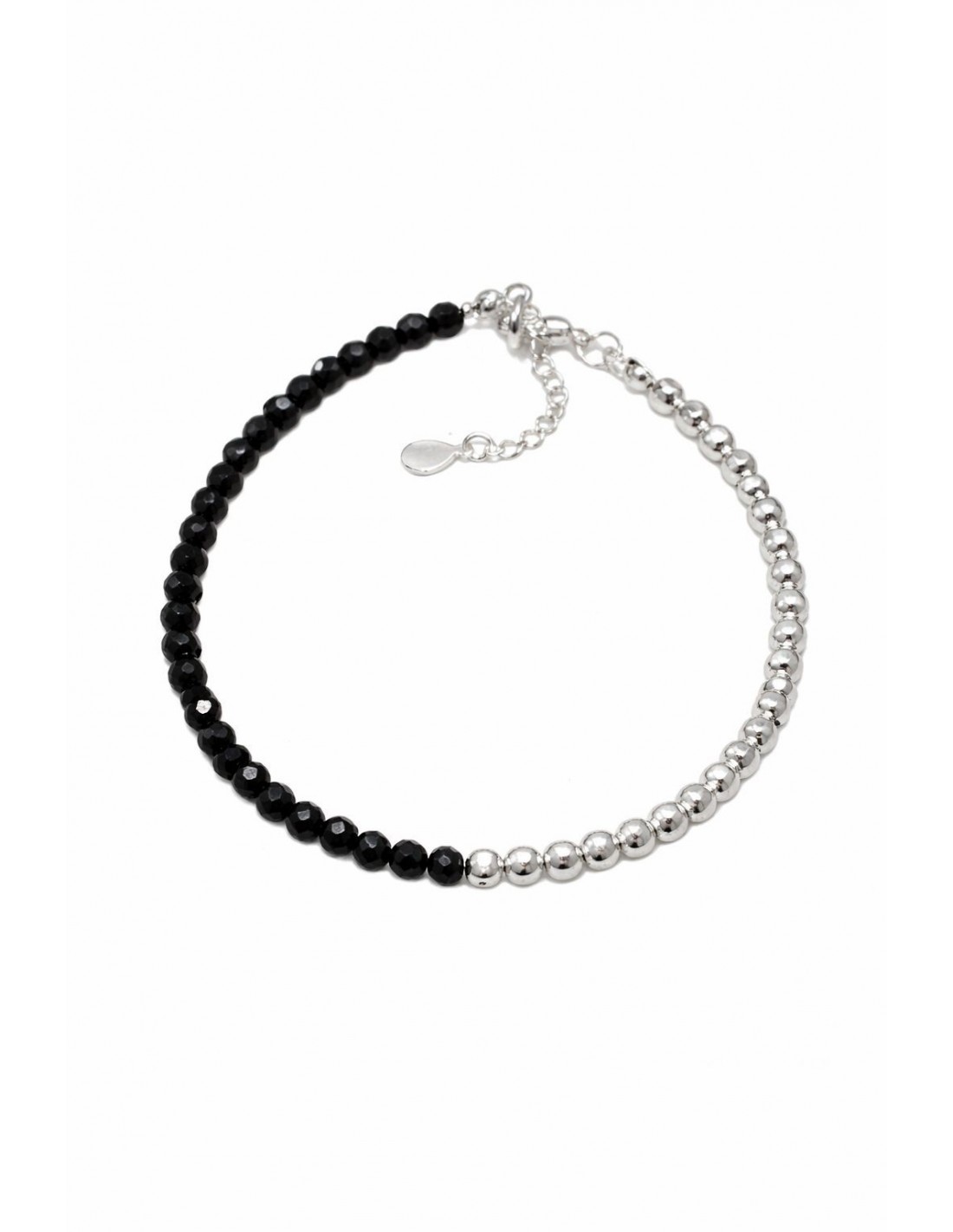 PULSERA BAÑADA EN PLATA CRISTALES NEGROS
